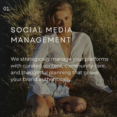 Our mission is to create a safe, collaborative space where your ideas and ambitions come to life. From managing your social media presence to crafting elevated content, guiding creative direction and shaping your brand’s story, we handle every detail with heart, creativity and precision.
